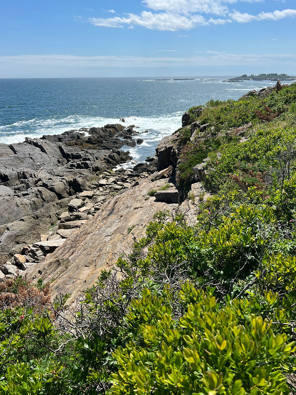 Bailey's Island is the site of a famed restaurant, Cook's Lobster House. Marvin had visited this iconic restaurant before, over 60 years ago, on a family vacation. A small park near Land's End was a nice, short walk to scenic vistas and a geologic formation dubbed "Giant's Stairs." The rocks in this area are shiny due to mica schist that is layered with quartzites.